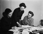 Mrs. Tommy Vandergriff, seated left, and Mrs. Richard Snider, seated right, both of Arlington, get advice from Mrs. Walter Harris, standing, center, chairman of Fort Worth's Mothers March on polio, in preparation for Arlington's march the evening of January 29th.