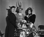 Mmes. Carroll Farmer, J. E. McAdams and Ben Barker, left to right, are shown in costume at the celebration of the founding of the International Order of the King's Daughters in 1886. The City union observed the occasion at First Methodist Church. The table decorations were typical of those used in 1886.