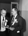 Frank Vollintine of Smithfield, supervisor of the Dalworth Soil Conservation district, left, talks conservation with Walter S. Davis Jr. of League City, president of the National Association of Soil Conservation Districts, at the convention of the Texas association at Mineral Wells Thursday.