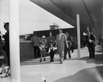 Mr. And Mrs. Bob Robinson, 1000 Schieffer, and their children, Curt, 3, and Randa, 5, stroll along the ramp at Greater Fort Worth International Airport. It was a Sunday afternoon and they were among an estimated 75,000 who came out for the first public inspection of the airport. "It's wonderful," was their description of the giant field and terminal building.