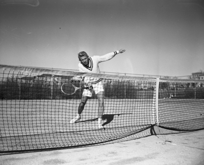 January 26, Monday's beautiful weather had two TCU athletes out for an early start on training for spring sports. One is Dick Roden, a sophomore, has aim set on making the Frog tennis squad.