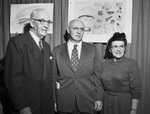 J. Lee Johnson Jr. left, president of the Fort Worth Children's Museums brings William G. Hassler, to become executive director March 1, up to date on plans for the new museum. Hassler and his wife visited Fort Worth for January 26, Monday's Museum board meeting. The three individuals are standing next to each other.