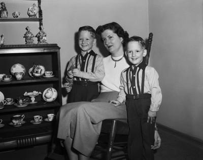 Mrs. R. A. Pendery and her sons, Rick, left, and Paul, are visiting Mrs. Pendery's parents, Mr. and Mrs. F. W. Chapman, 3516 Rogers. They have been residing in Newport, R. I., where Lieutenant. (jg) Pendery has been stationed with the Navy. He will be discharged soon, and the family will reside in Oklahoma City.