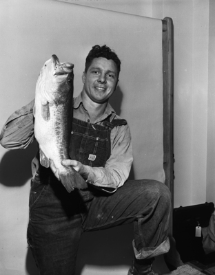 Frank Huffman of 2204 Bonnie Brae is exhibiting the seven-pound black bass he caught in Eagle Mountain Lake just below Indian Creek. So far as known this is the biggest black caught in this near-by lake so far this year.