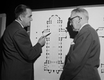 Reverend R. W. Jablonowski Junior pastor, left, and Earl C. Scott review plans for the sanctuary, now under consideration by the congregation. It represents the final step in the building program of the church at 2600 Sandage.