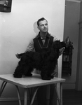Shadow's Black Rumor, posed here by his owner, William F. McNeel, has been entered in the Shamrock Cocker Specialty Show at the Shamrock Hotel in Houston on March 1st. McNeel bought the dog recently and will show it himself at the Houston event. He plans to train the dog in obedience, too.