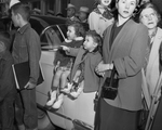 The youngsters, Linda Lou Stephenson, 3 1/2, and her sister, Brenda Lee, 1 1/2 watched the parade sitting on a car. They are the daughters of Mr. and Mrs. G. L. Stephenson of 833 E. Allen.