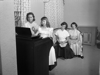 This quartet of teenagers entertained their junior high classmates and friends at a dance held at the Colonial Country Club. Sitting left to right are Sherry Swenson, Lucille Horn, Margaret Lu Rounds, and Carol Wynn.