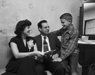 Mrs. Mary Rose Weddel, 1927 Edgewood Terrace, goes over the events of 32 years with a brother, David A. Staggee, center, from whom she became separated in infancy. Getting acquainted with his new-found uncle is Tommy Weddel, 10.