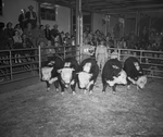 Greenhill Farm of Tulsa, owned by Jim Sharp, displayed the champion pen of five Hereford bulls at the Southwestern Exposition and Fat Stock Show Sunday. The reserve pen of five was shown by Charles Neblett Junior of Stephenville.