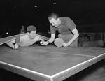 Image shows Harry Cook (under net) and Douglas Cartland. Published in Fort Worth Star-Telegram morning edition April 14, 1950.