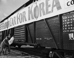 J. D. King, general chairman of the Jaycee committee on religious activities, and Bill Baker, committee member, load the first sacks of flour donated in the Flour for Korea drive.