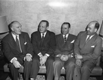 A. R. Fisher, left, president of Johns-Manville Corporation, Monday announced start of construction here of a 25,000-square-foot warehouse at 2222 west 5th. Accompanying Fisher here were, left to right, K. W. Huffine, vice president for production; C. W. Hite, vice president for products, and Dr. Kenneth W. Smith, medical director.