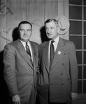 Jimmie Stewart, left, vice president and general manager of the State Fair of Texas at Dallas, is welcomed to the annual Cattleman Magazine luncheon at the Stock Show Monday by Jack Roach of Amarillo, president of Texas and Southwestern Cattle Raisers Association, which publishes the magazine.