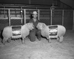 Richard Moehle holds the champion Southdown ram and the champion Southdown ewe, both of which were exhibited at the Southwestern Exposition and Fat Stock Show by Henry Moehle and Sons of Enid, Oklahoma.
