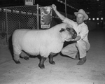 Harrison Davis of Dorchester holds his champion Hampshire ram, named at the Southwestern Exposition and Fat Stock Show Tuesday morning.