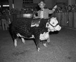 E. E. Moore shows his champion female Polled Hereford, EER Victor's Miss M III. The animal from the Double E Ranch, Senatobia, Mississippi, was a winner Tuesday at the Southwestern Exposition and Fat Stock Show.