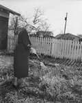 Miss Emma Miller is a retired school teacher who has found gardening a fascinating hobby. She is very fond of iris and is shown here getting her large iris bed in condition for spring blossoming.