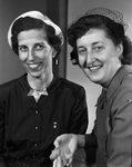 Mrs. Terrell F. Mashburn, left, president of Fort Worth City Council of Parents and Teachers, presided at the annual Founders Day luncheon, held Wednesday at Hotel Texas. Mrs. R. W. Van Hamersveld gave the tribute to Parents and Teachers founders and life members.