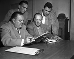 Fort Worth Amateur Baseball Association members make plans for 1953 season. Left to right are President Sam Hunter, Jack Brittain, Jim Hill and Sergeant Morris Blevins.