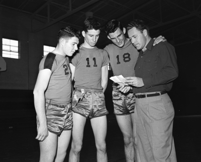 Don Autrey, Nick Powell, Donald Davis and Coach Johnny Nobles, left to right, discuss success Birdville high school is having in defending its 2A-11 basket ball championship.
