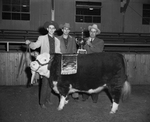 Billy, left, and David Bridgford Friday received the Texas Livestock Marketing Association's 7th annual award from Roy Boswell of the Texas Livestock Marketing Association. The animal was sold to Leonard's Department store for $3,850 at the stock show steer auction.