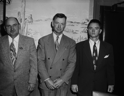 Charles M. Lusk, Houston, right, was elected president of the Texas Shorthorn Association at the membership meeting Thursday night. A. H. Caraway, De Leon, left, was elected vice president, and center is Z. L. Koonce, Desdemona, who was re-elected secretary-treasurer.