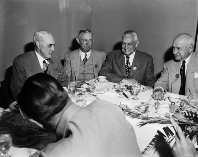 Left to right, Allen Meriam, Fort Worth Mayor J. R. Edwards, Dallas Mayor J. B. Adoue Jr., and Amon Carter.