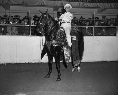 Mexico Black Diamond, owned by Charles Eickel of Metairie, Louisiana, and ridden by William Eickel, won the parade horse championship of the Southwestern Exposition and Fat Stock Show horse show.