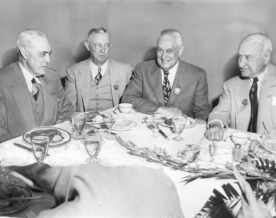 Amon Carter (on right) with Allen Merriam (editor in chief, Dallas Times Herald), Fort Worth Mayor J. R. Edwards, and Dallas Mayor J. B. Adoue at the Fort Worth Club, 02/08/1953.