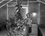 Mrs. Earl Waddell in her greenhouse on Cook's Lane.