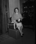 Mrs. James R. Morton, shown with luggage before leaving to join her husband in Maryland.