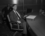 Expressions were serious on the faces of principals at the second session of the public hearing on Southwestern Bell Telephone Company's plea for higher rates. Reginald S. Paulison, superintendent of public statistics for Western Electric Company, contemplates a question posed by the City attorney.