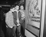 Three Abilene Golden Gloves, Flyweight Jimmy Mullins, left, Feather John D. Pointer and Welter Jimmy White take quick glance at the poster in front before indulging in a movie. They are looking at a movie poster labeled, "The Mississippi Gambler."
