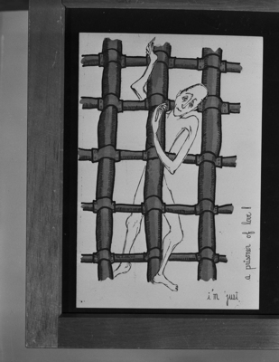 The extreme in modernistic Valentine is shown by this creature who admits he is just a "prisoner of love".