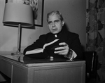 The priest, Reverend John J. Dougherty, who is to speak on the Christian Culture Series in Will Rogers Memorial Auditorium at 8:15 p. m. Wednesday, in an interview, warned that materialism is obscuring spiritual values. Father Dougherty, was professor of sacred scripture at Immaculate Conception Seminary in Darlington, New Jersey, called for a better informed citizenry.