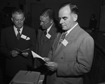 Dr. D. D. Wall, left, president-elect, and Dr. George F. Adam, right, president of the Texas Association of Obstetricians and Gynecologists, welcome to the convention here Dr. Christopher Duncan, guest speaker from Harvard Medical School.