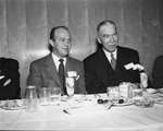 Dean J. E. McCarthy of Notre Dame University, right, speaker at the Southwestern Association of Advertising Agencies' final luncheon of its convention here, visits with his host, W. A. Schmid Jr. of Fort Worth, left.