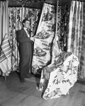 Nicholas Walsh, owner of House of Draperies, stands near one of the drapery displays in the new business.