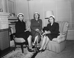 Present in this photo is Mrs. Charles L. Wood, left, Mrs. D. W. LeMaster of Tulsa, traveling alumnae province secretary of Gamma Phi Beta sorority, and Mrs James H. Lowry, right, recently elected president of the Fort Worth alumnae at Mrs. Wood's home at 3971 Lafayette.