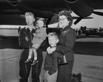 Captain Charles F. Geesin, co-pilot of the ill-fated bomber, holds his daughter, Patricia, 3, after his joyous reunion with his wife and other child, David, 8.