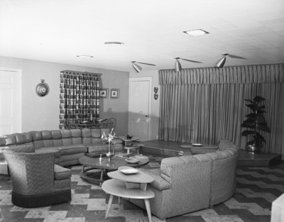 At 48 Valley Ridge Rd., the home of A. M. Pate Jr., the lower level is given over to diversion. Here in the playroom there is to be found a stage, a kitchen, easy chairs, convenient tables and room for all types of diversion. The room is large enough for a big ball.