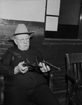 County Jail Turnkey W. P. Foster examines two.38 caliber revolvers taken from the jail office by prisoners during Wednesday night's jail break. The weapons were in the possession of three prisoners captured near Beaumont Thursday. The three were returned to their cells here Friday.
