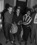 Three of the 10 prisoners who broke out of county jail Wednesday night after slugging three guards are shown here after being returned from Nashville, Arkansas where they were captured. Awaiting return to fifth floor cells are, from left to right is Lloyd Lesher, Ray Bayless, and Manuel Hernandez.