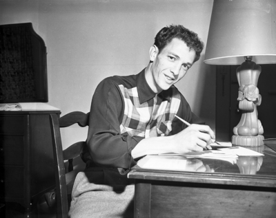 Woody Keller of San Antonio, he's Texas bantamweight champion and delegate to Chicago. Keller is writing a letter.