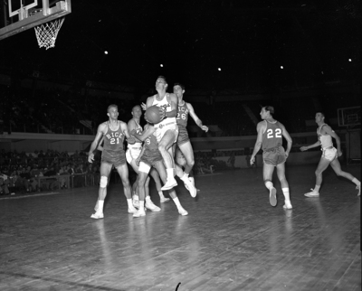 Texas Christian University cagers can climb toward the basket, too, as captain Dick Alle does here against Rice. A senior, he's making last schedule start tonight.