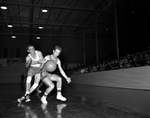 Poly's Don Bice spins away from the reaching hand of Sunset's Jimmy O' Bannon in Wednesday night's bidistrict game. Bice scored 13 points to lead the team to 51-47 victory and state meet berth.
