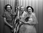 Three of the 16 pages at the DAR convention at Hotel Texas are shown with the American flag at the banquet Wednesday honoring Mrs. James Patton of Columbus, Ohio, president general of DAR. The pages are, from left to right, Mrs. George T. Spears Jr., Fort Worth, Mrs. Robert Barbre, Dallas, and Mrs. A. W. Whitlock, Fort Worth.