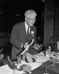 L. F. Livingston, manager of the public relations department of E. I. du Pont de Nemours & Company of Wilmington, Delaware, wore a dark green tie made of a new "Wool-like synthetic fabric" at Hotel Texas.