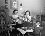 The Fort Worth Council of Camp Fire Girls celebrate the 43rd anniversary of the organization. The mothers who used to be a Camp Fire Girl are celebrating the anniversary with the second generation. Mrs. Alex Clarke Junior and her daughter, Christopher, 4213 Anita, sort out project material.